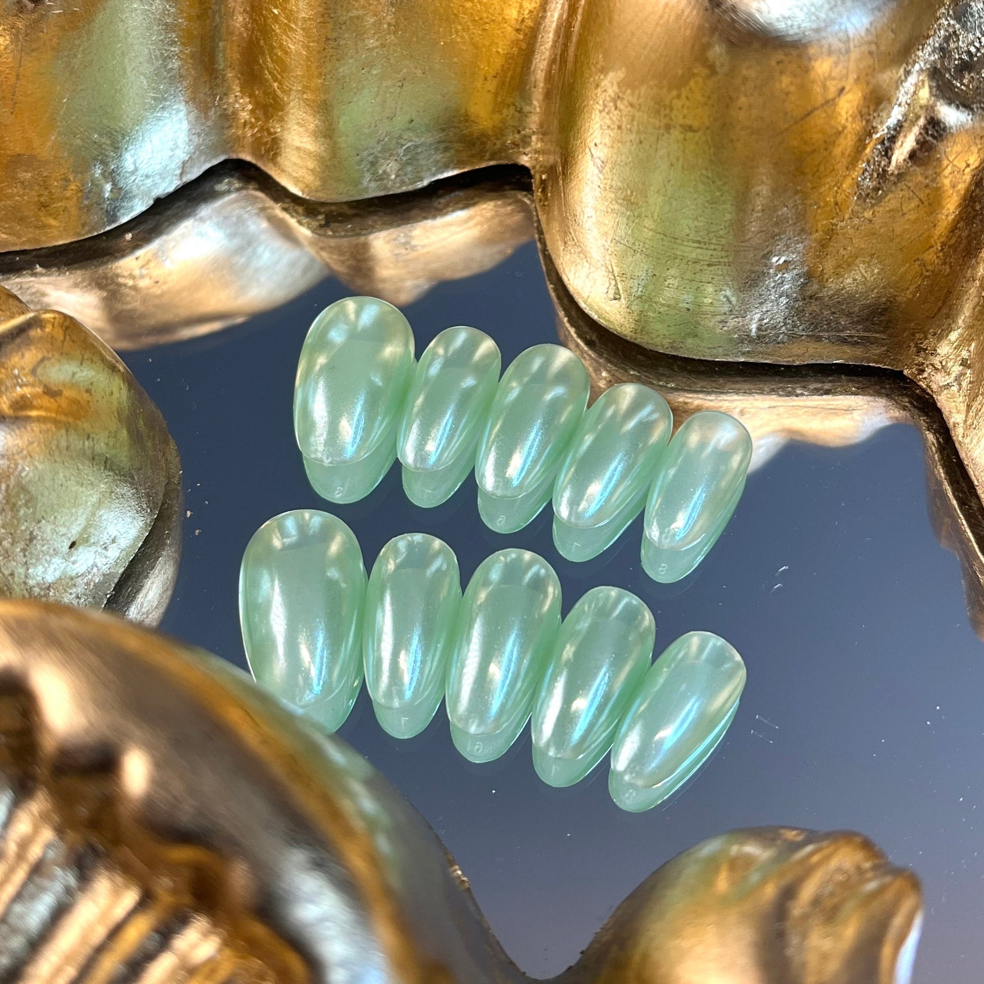 Simple but stunning! Our Jade press on set is perfect for everyday wear for many seasons. Its glazed chrome effect adds the finishing touch to the classy set.